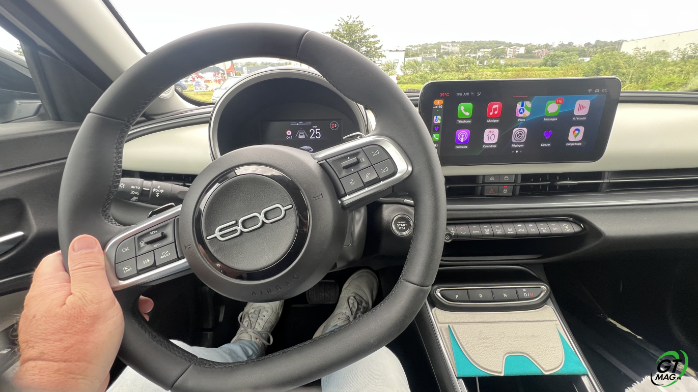 Côté conduite la Fiat 600 hybride offre une expérience agréable et économique… Son design élégant et ses équipements complets la dote de points précieux pour notre magazine… Elle offre un compromis équilibré entre performance et une vraie polyvalence… La direction est précise et la maniabilité facile… Les suspensions sont confortables pour des trajets courts sur route et en ville, elles absorbent assez bien les chocs ce qui rend les trajets quotidiens plus agréable… Le système d’infordissements tactile est ludique et la caméra de recul ajoute au confort de conduite… Sur la route, si la boîte auto se montre assez rapide à la montée des rapports, elle est un peu trop lente à rétrograder. Heureusement, Fiat a prévu des palettes au volant pour les forcer, par exemple avant un dépassement qui, grâce au couple suffisant de 205 Nm à 1 750 tr/min, s’exécute aisément : seulement 8,1 s pour passer de 80 à 120 km/h. A vous de voir et d l’essayer maintenant…
