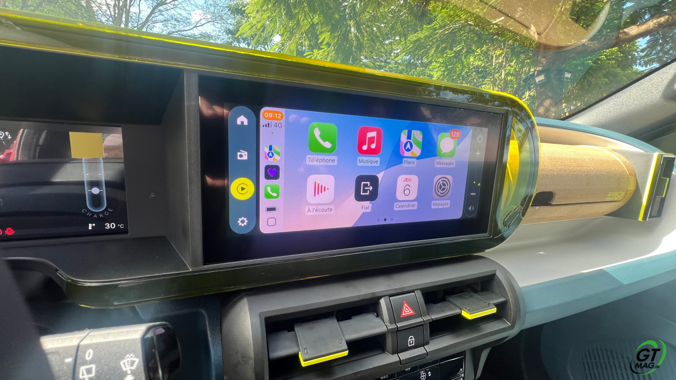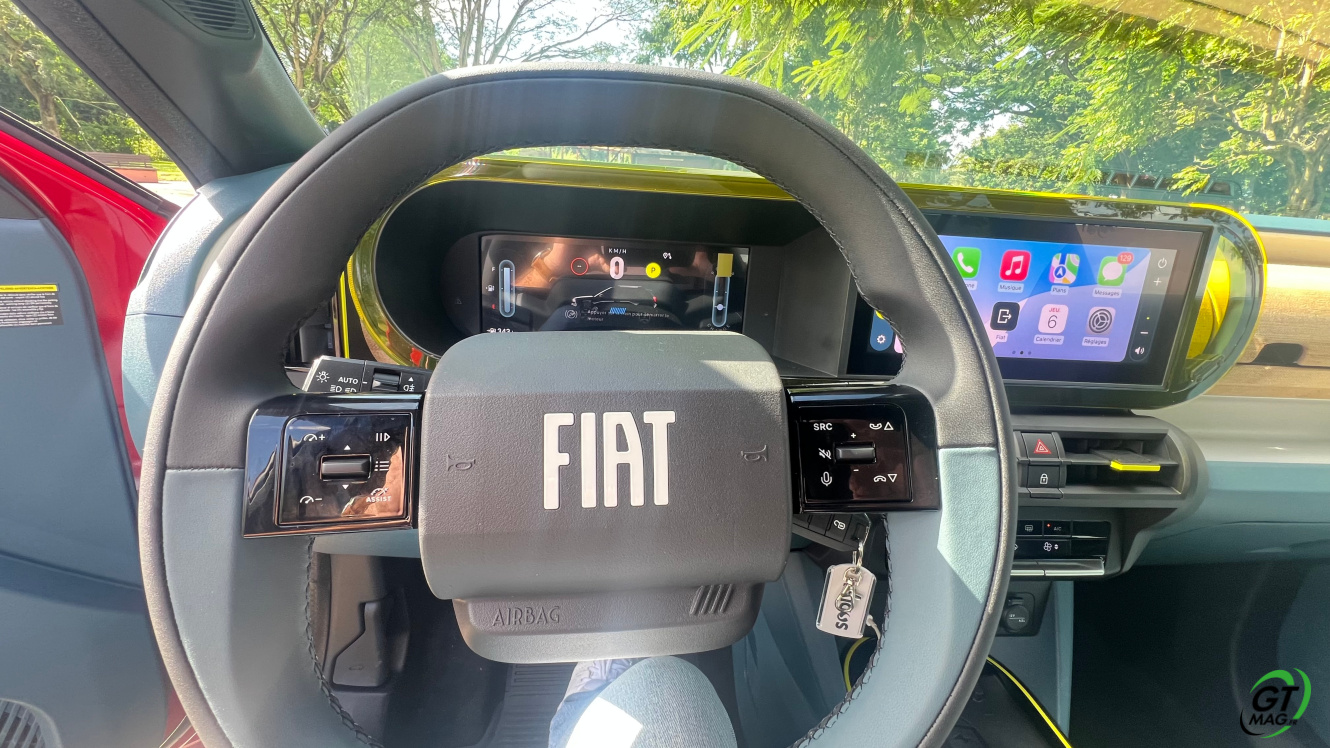 Comme on l’a vu la Fiat Grande Panda est un produit du groupe Stellantis (qui possède également Peugeot, Citroën et Opel), donc sous le capot : pas de surprises. Comme la plupart des citadines du groupe, la Grande Panda met en avant deux moteurs. D'une part, il y a le 3-cylindres 1,2 litre turbo hybride léger essence de 100 ch « Hybrid » et qui est associé de série à une boîte de vitesses automatique à 6 rapports. Ce dernier est couplé à une boîte 6 rapports eDCT6. La boîte de vitesses accueille un petit moteur électrique. Ce dernier assiste le moteur thermique à basses vitesses et lors de fortes accélérations. ​ De quoi limiter la consommation de carburant et les émissions 5.3l au km pour des rejets de CO2 de 116g/kmIl existe également une Grande Panda électrique. Elle est équipée d'un moteur électrique de 113 ch sur l'essieu avant et puise son énergie d’une batterie de 44 kWh qui devrait lui permettre d'atteindre une autonomie de 320 km. La recharge peut se faire à 7,4 kW AC - via un ingénieux câble de recharge intégrée dans la calandre - ou à 100 kW sur une borne rapide.
