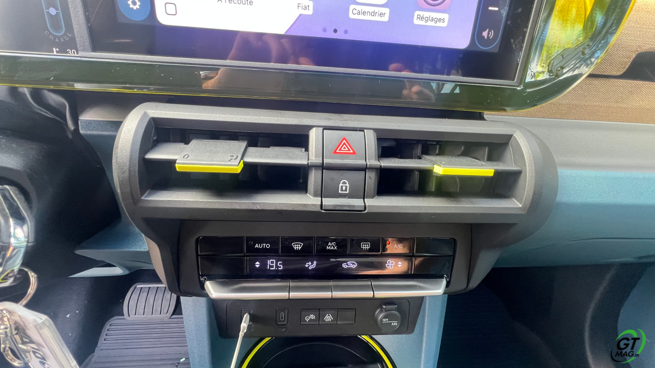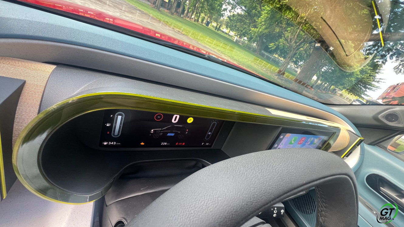 La Fiat Grande Panda a plus d'une décennie de tradition à respecter et les références à la Panda originale sont nombreuses. Non pas pour le design minimal - mais pas dépouillé - de l'intérieur, mais pour des éléments tels que l'habitacle avant, typique de la Panda des années 1980. Le plastique dur domine sans conteste - pour des raisons de prix - mais les assemblages semblent bien réalisés. La petite taille et le prix bas - nous y reviendrons plus tard - ne signifient pas de sacrifices en termes de technologie. L'instrumentation numérique est de 10 pouces tandis que l'infotainment s'affiche sur un écran de 10,25 pouces. Les plaques à induction pour recharger les smartphones, la climatisation automatique et les différentes prises USB ne manque pas. En termes d'espace, les presque 4 mètres sont bien utilisés, avec suffisamment de centimètres pour les personnes assises à l'arrière et 361 litres de coffre.