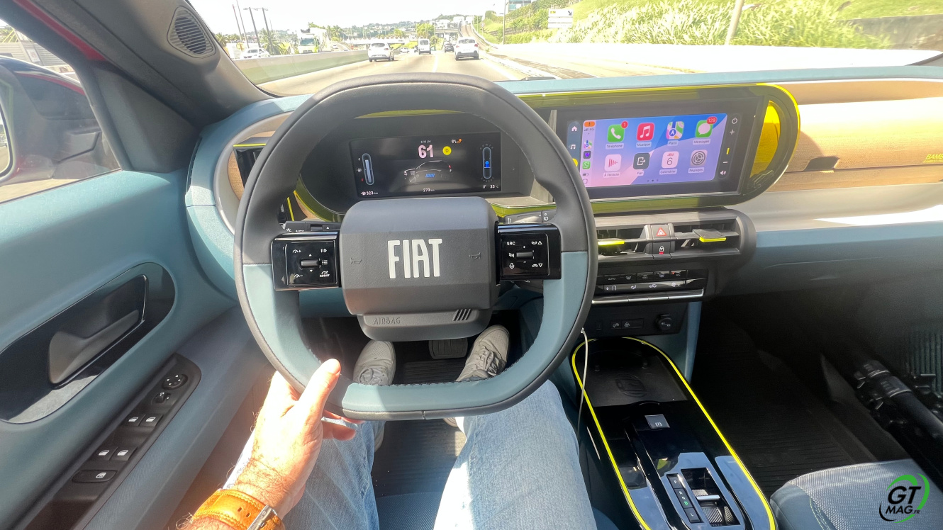 Tout d’abord je la trouve très fun cette Grande Panda… Ce n’est pas une voiture haut de gamme mais elle a quelque-chose d’attachant et de différent… Fiat adore jouer la partition du néo-rétro. Cela parlera à pas mal de quinqua… Sur notre rocade ou notre autoroute la Grande Panda s’avère assez réactive et vraiment agile pour toutes les situations urbaines. Elle offre l’avantage d’une accélération douce qui limite notamment les risques d’accrochages lors des manœuvres tout en ménageant les passagers grâce à l’absence d’à-coups brutaux. En évoluant en ville, la Panda s’avère vraiment simple à manier et facile a faufiler dans les petites rues de Fort de France son système mild-hybrid permet de vrais économie… En plus elle ne passe pas inaperçue les gens semblent ‘Liker’ ! A vous de l’essayer maintenant…