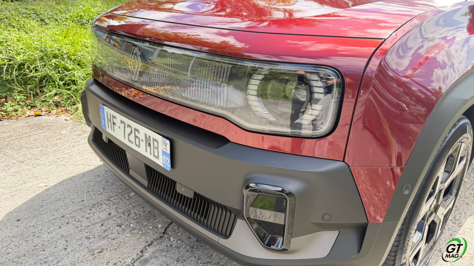 La R4 E-Tech affiche des dimensions généreuses avec 4,14 mètres de long et 1,80 mètre de large, pour une hauteur de 1,57 mètre. Son empattement de 2,62 mètres garantit une excellente habitabilité, complétée par un coffre de 420 litres. Basée sur la plateforme AmpR Small, cette nouvelle génération propose un rayon de braquage de 10,4 mètres et une garde au sol surélevée de 18,1 cm. Le système de freinage comprend des disques ventilés à l'avant et des tambours à l'arrière, optimisés pour la récupération d'énergie. Très haute sur pattes on l’a vu avec une garde au sol de 18,1cm, elle affiche clairement ses ambitions baroudeuses, d'autant qu'on peut venir lui greffer quelques accessoires de plagiste, comme un toit ouvrant, des marchepieds ou encore un crochet d'attelage, permettant de rajouter un petit coffre, des vélos, un bateau ou même une caravane