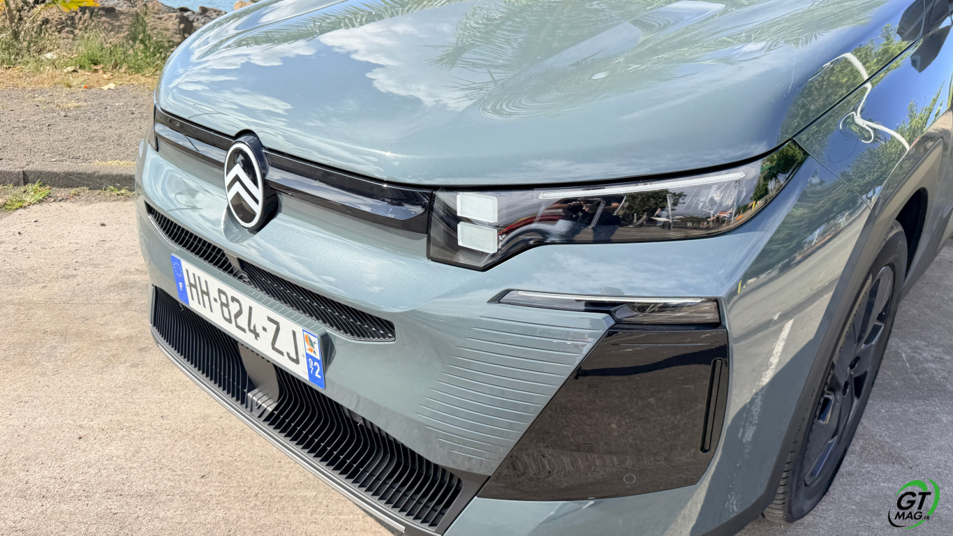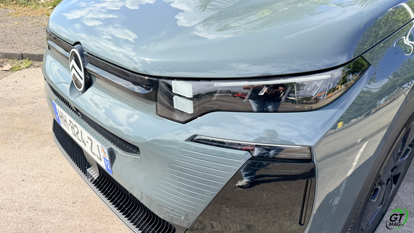 Le dernier-né de Citroën se positionne donc plus haut parmi les SUV du segment C qu'auparavant, avec un design beaucoup plus affiné et bien plus mature Les rondeurs de la première génération laissent place à une silhouette musclée, tendue, où chaque ligne semble sculptée pour imposer sa présence. La nouvelle signature lumineuse à trois points, immédiatement identifiable dans la famille Citroën, donne au SUV une signature unique sur la route. Les projecteurs Matrix LED sont reliés par un bandeau noir brillant, chic et discret, tandis que des stries dans le bouclier rappellent les chevrons de la calandre. Sur la version électrique, la face avant est complètement fermée pour maximiser l’aérodynamisme et l’efficacité énergétique.