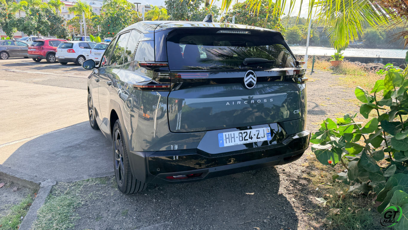 Proposé a son public en octobre 2025, fabriqué à Rennes, la seconde génération de Citroën C5 Aircross s’octroie une pléiade de nouveautés en rejoignant la plate-forme STLA Medium… Cela permet d’introduire dans la gamme C5 Aircross un nouvel ensemble hybride rechargeable de 195 ch cumulés, deux inédites versions électriques de 210 ou 230 ch (en attendant l’ë-C5 Aircross de 325 ch à deux moteurs). Dans cette nouvelle gamme, seul un moteur existait déjà sur le précédent C5 Aircross : le trois-cylindres essence microhybride, maintenant en 145 ch que nous propose à l’essai Citroën Martinique ce matin... Le nouveau Citroën C5 Aircross a considérablement grandi ! Il gagne16 centimètres en longueur, pour atteindre un total de 4,65 mètres en offrant une garde au sol de 20 cm. À titre de comparaison pour sa longueur, cela rend le C5 Aircross 5 centimètres plus longue qu'un Toyota RAV4.