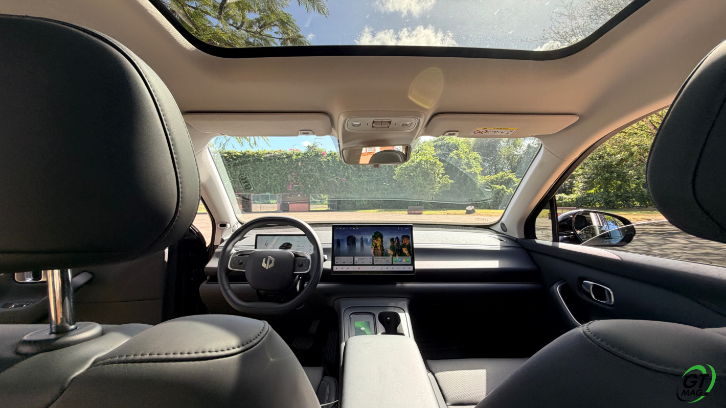 Sur nos routes la sonorisation est vraiment très bien maîtrisée malgré les rappels sonores des aides à la conduite assez intrusifs… La machine thermique est plutôt bien insonorisée avec… Une fois de plus je suis agréablement surpris par la qualité des suspensions du Leapmotor C10 et c’est très honorablement qu’il absorbe les aspérités de nos routes secondaires avec aisance préservant ainsi au passage mes lombaires… Les matériaux de l’habitacle sont à la hauteur et le sentiment de sécurité avec une conduite haute n’est pas un leurre… La douceur de conduite même si la direction est peu réactive, le silence et l’ergonomie du véhicule font du Leapmotor C10 REEV un véhicule fiable et agréable… A vous de l’essayer maintenant et nous écrire pour nous donner votre avis chez Peugeot Martinique…