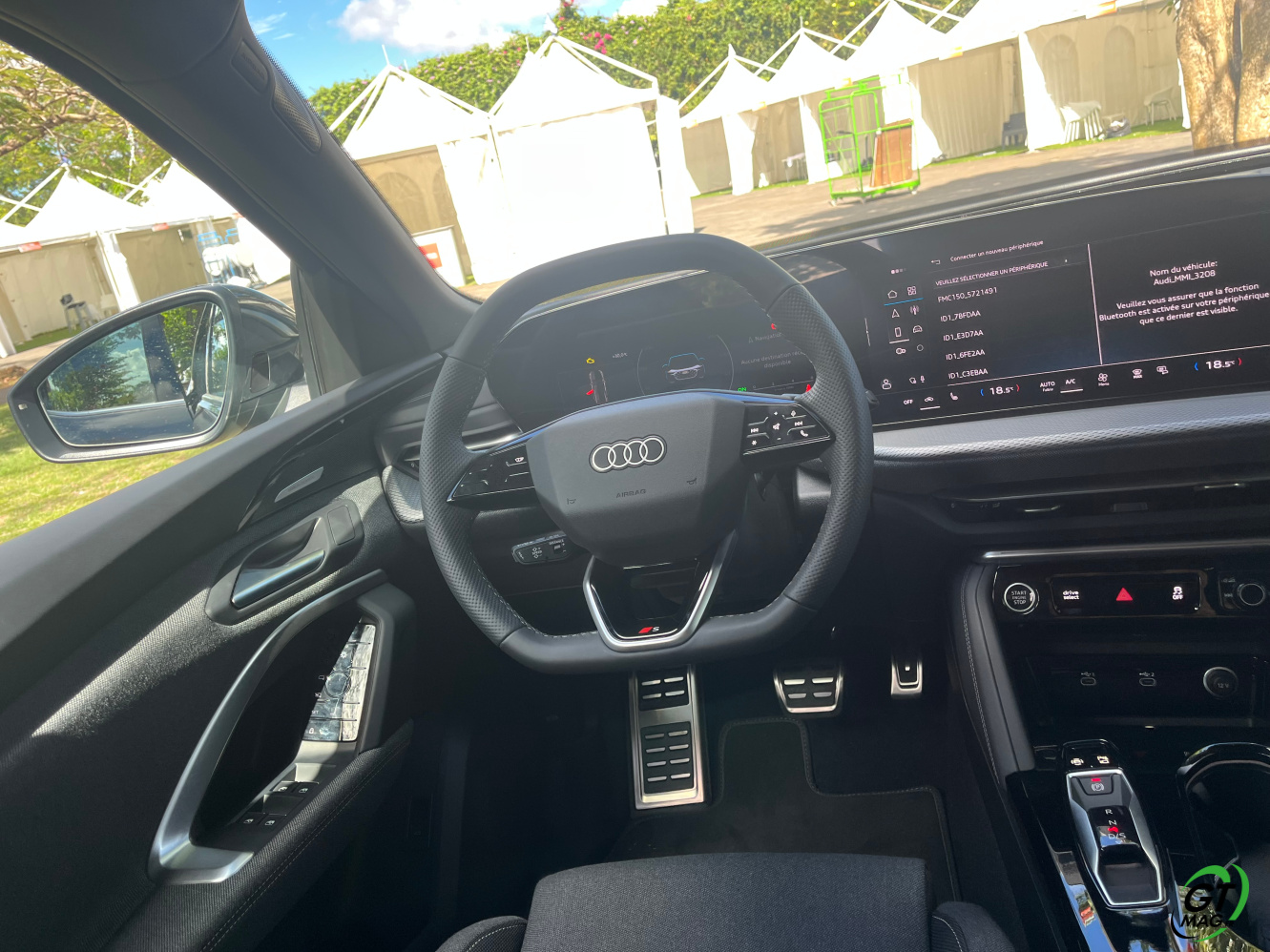 Nous sortons à peine de la soirée de lancement des nouveaux Q3 et Q5 chez AUDI Martinique que déjà notre essai du Q3 Sportback est disponible sur Gtmag.fr et que ce matin nous allons tout vous dire sur l’iconique AUDI Q5 Sportback TDi de 3ème génération fraîchement arrivé sur notre île… AUDI propose toujours un moteur diesel dans son offre. Une motorisation qui devient rare, et dont nous avions presque oublié les avantages… Pendant thermique du Q6 e-tron, l’Audi Q5 se distingue par sa vraie calandre « Singleframe » au motif en nid d’abeilles présentant de larges ouvertures afin de faciliter le refroidissement de la mécanique. Pour le reste, on est sur un copié/collé du SUV électrique, dans sa version normale ou dans sa déclinaison Sportback qui sont tous deux sportifs et élégants. Départ de chez AUDI Martinique à côté d’AUTOSGM près de la Galléria…