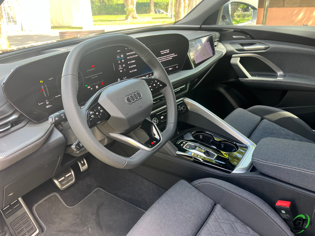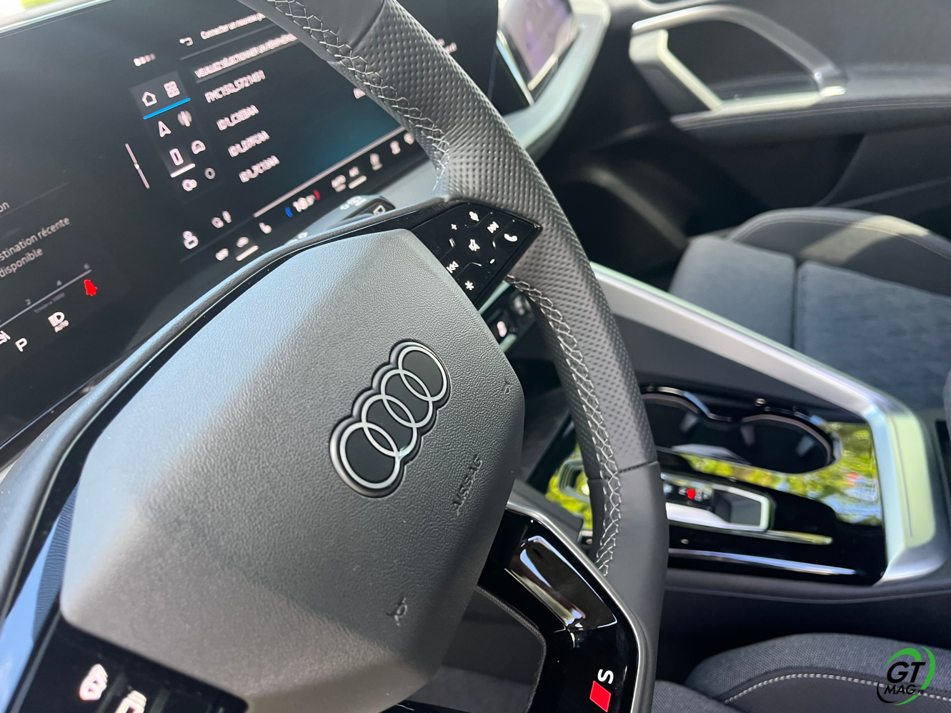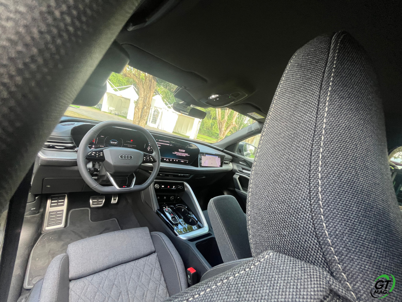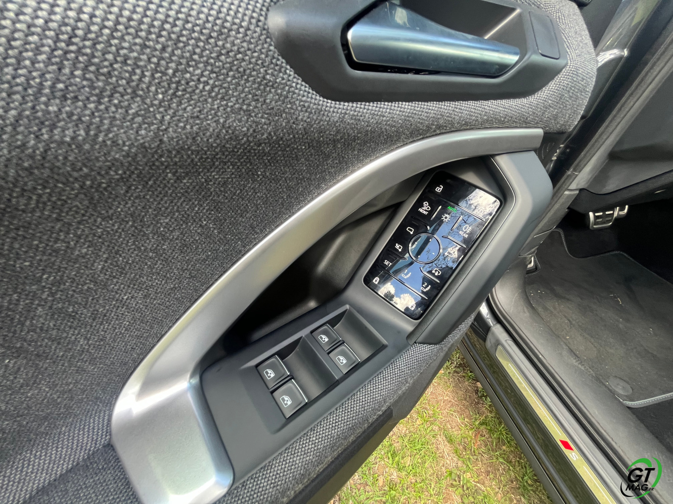 Question ligne, la sobriété est de rigueur comme d’habitude chez Audi. Avec des optiques placées 4 cm plus haut que dans l’ancien modèle, le Q5 s’affirme de façon plus virile. Audi offre à ses clients huit signatures lumineuses différentes, un détail que certains apprécieront pour personnaliser leur voiture. A l’arrière, le constructeur aux anneaux a soigné la présentation de son SUV avec un large bandeau lumineux OLED dans les animations sont également personnalisables. Audi a adapté à la version Sportback le quatrième feu stop s’affichant par projection sur le haut de la lunette arrière. On peut également se réjouir de la présence de vraies sorties d’échappement en acier, un détail plus « premium » les canules factices que l’on voit souvent chez les autres constructeurs. Alors que beaucoup de constructeurs automobiles font le choix délibéré de revenir à des commandes physiques, Audi se démarque en proposant de plus en plus de fonctions tactiles sur le volant et les panneaux de portes.
