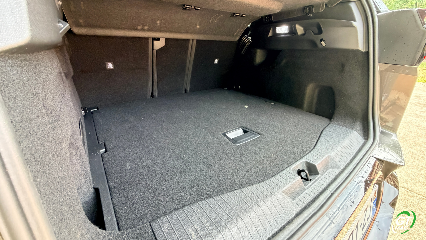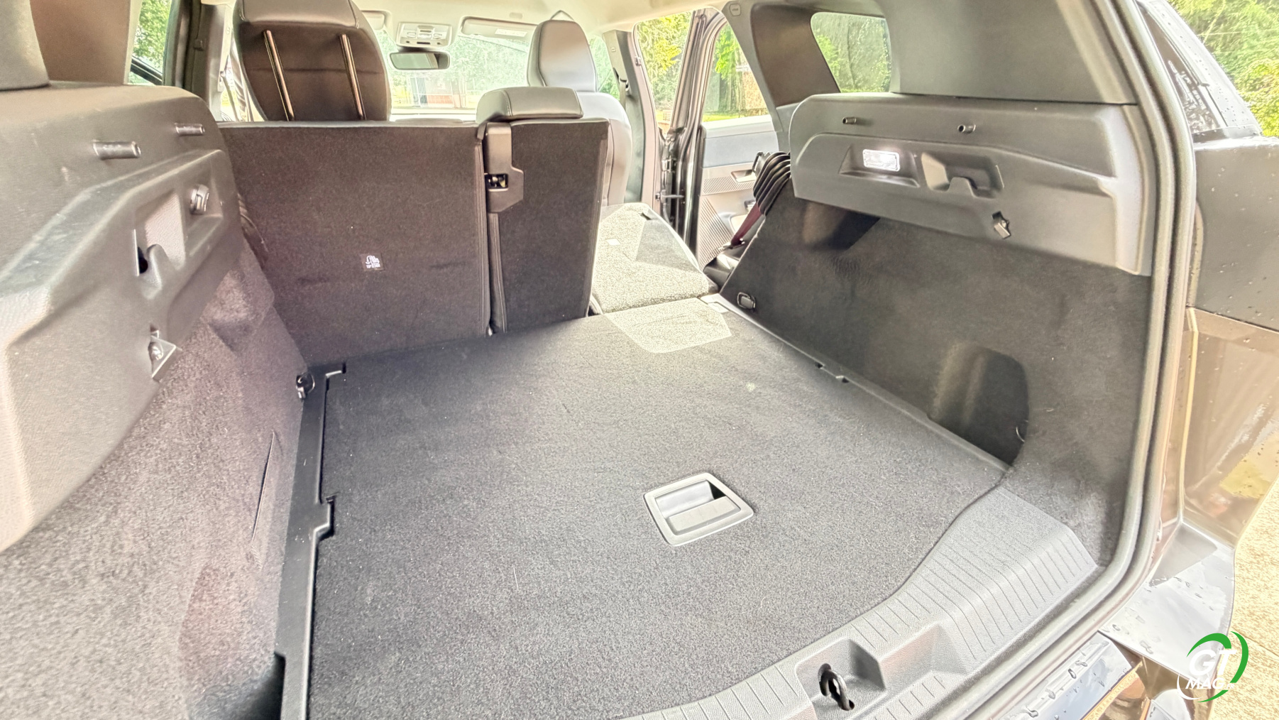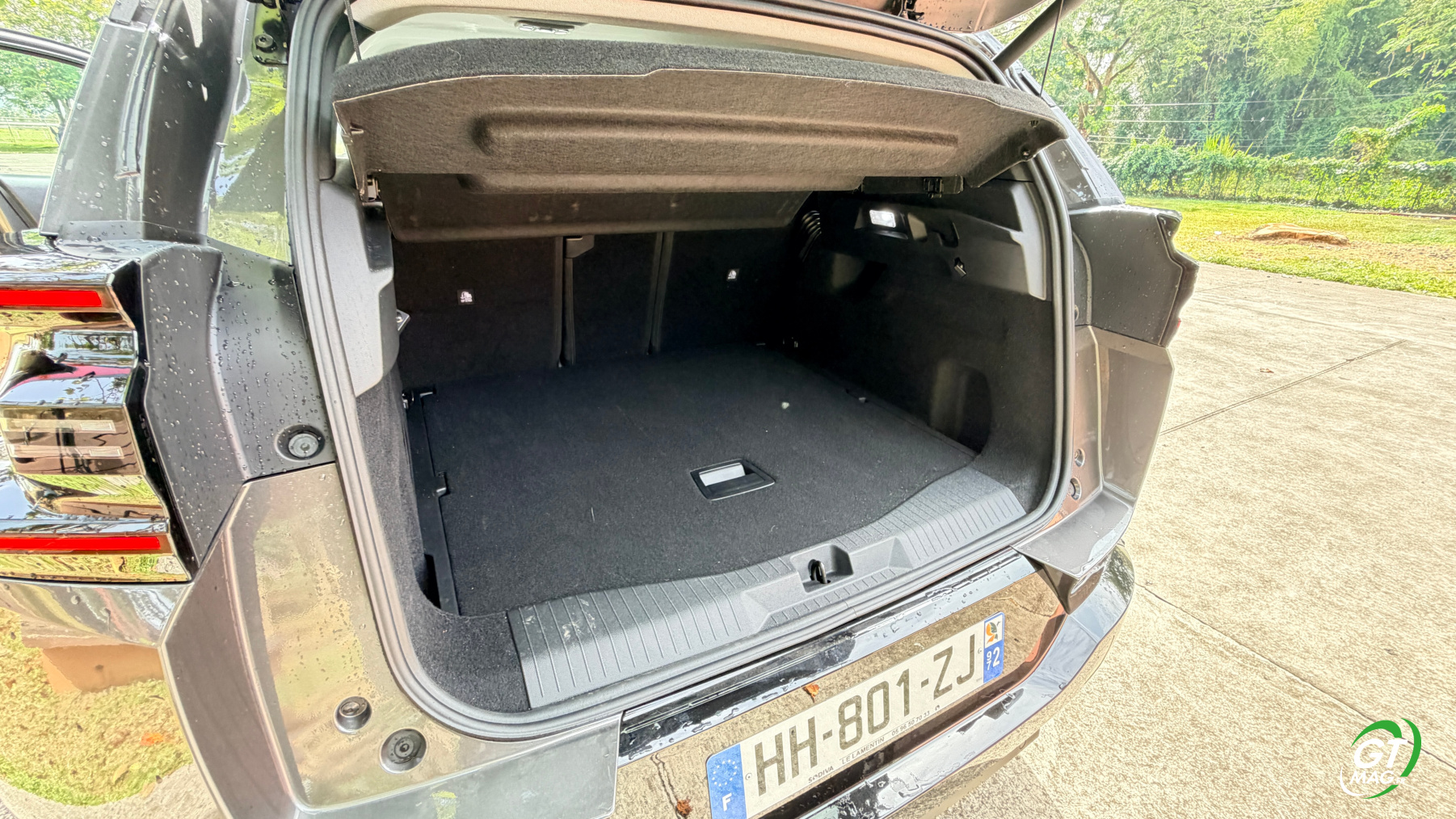 À l’arrière, le nouveau grand SUV de la marque abandonne ses trois sièges individuels, qui faisaient le charme de l’ancienne génération, pour préférer une banquette fractionnable 40-20-40 possédant quand même des dossiers inclinables, afin de maximiser le confort des passagers arrière qui, à tout le moins, sont choyés. Ainsi, grâce à son empattement de 2,784 m, en hausse de 6 cm par rapport à la première génération, le C5 Aircross propose un espace aux genoux arrière en hausse de 51 mm, pour devenir le meilleur de sa catégorie. Enfin, le coffre de 651 litres, disponible quelle que soit la motorisation choisie, offre une contenance comprise entre les 580 et 720 litres proposés sur l’ancienne génération. Toutefois, le compartiment est très bien conçu, avec des côtes bien droites et un volume exploitable totalement. Un plancher de coffre vient offrir un seuil de chargement plat, plancher qui peut être abaissé pour maximiser le volume de chargement. Comme toujours chez Citroën l’esprit pratique est renforcé par de nombreux rangements à bord, à l’image des aumônières supplémentaires à l’arrière pour ranger son smartphone, des bacs de portes dimensionnés pour des bouteilles d’eau et, à l’avant, par deux généreux vide-poches. Un est caché sous l’accoudoir central, l’autre sous l’écran central à l’avant.
