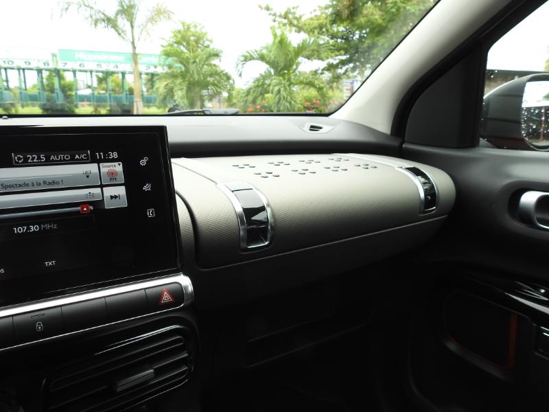 Mais la principale nouveauté de cette C4 Cactus  Rip Curl, c'est l'arrivée d'une molette devant le levier de vitesse, celle du Grip Control. Les réglages de l'antipatinage peuvent ainsi être optimisés en fonction de la surface rencontrée : asphalte, neige, boue, sable... Basée sur le troisième niveau de finition Shine, cette C4 Cactus Rip Curl présente donc, pour la Martinique et nos conditions parfois très humides, un niveau de sécurité bien supérieur grâce au Grip Control...