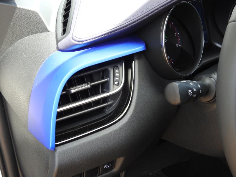 Et c'est ce qui surprend immédiatement lorsque l'on prend place à bord où la sensation d'espace à l'avant est bien réelle, le confort d'assise et l'amplitude des sièges étant très corrects. A l'arrière, les grands pourront placer leurs genoux sans problème et ne toucheront pas le toit avec leur tête. En revanche, il ne faut pas souffrir de claustrophobie, la vision vers l'avant étant réduite et, sur les côtés, réduite à une visée rétrécie... On se réconfortera avec un joli dessin de la planche de bord et de la console centrale dont les revêtements et les matériaux sont de très bonne qualité pour le segment. Toyota est même allé chercher DS et Lexus sur le terrain du design visuel avec une imitation très bien réalisée en "pointe de diamant" pour les contre-portes. Le tout est très valorisant et très bien assemblé, les ouvriers de l'usine turque se démenant pour prouver qu'ils sont aussi bons qu'en Allemagne.