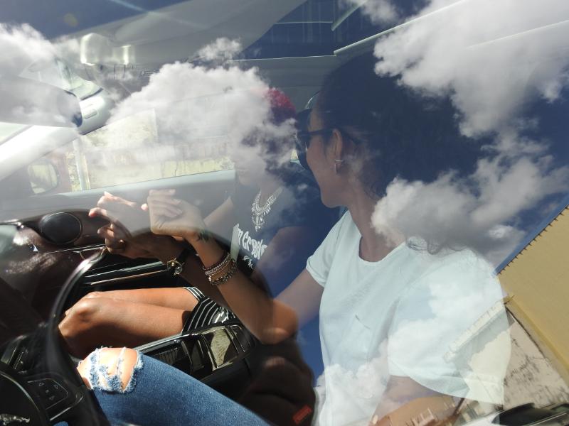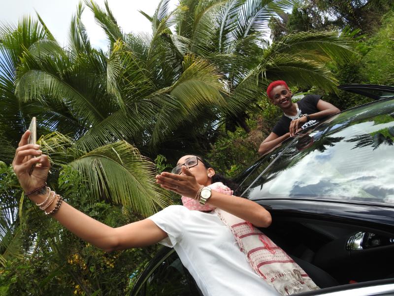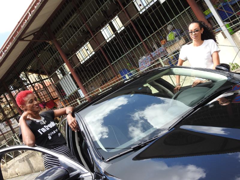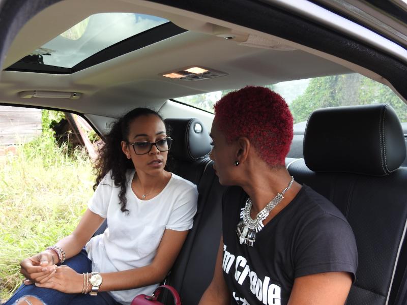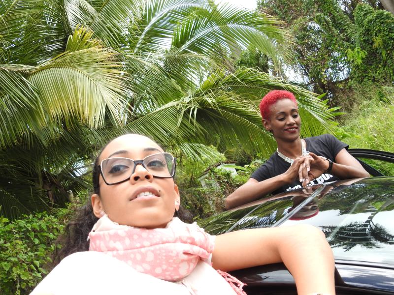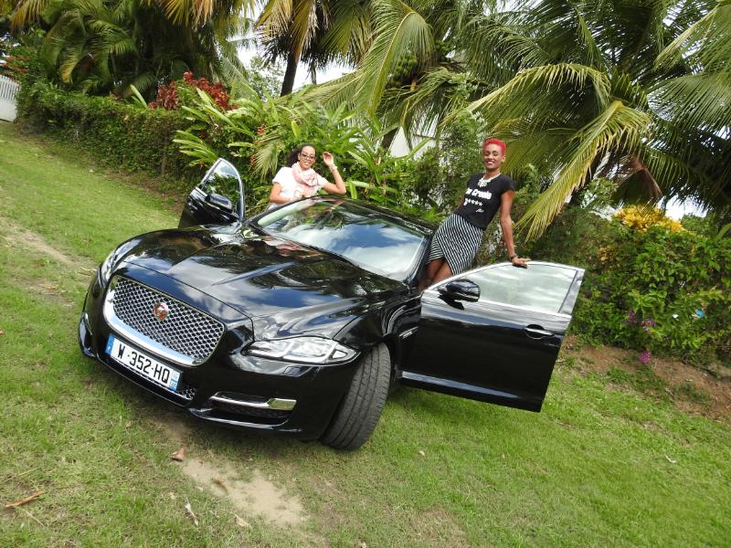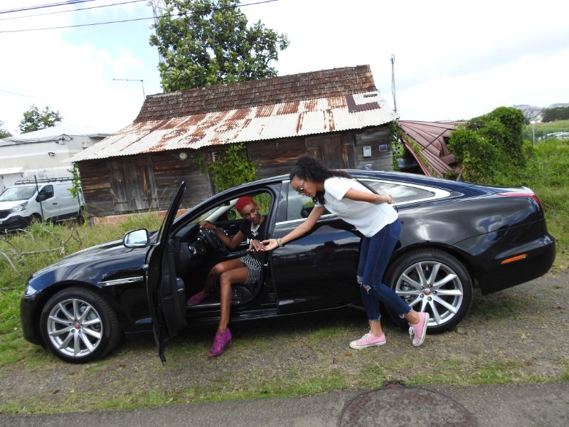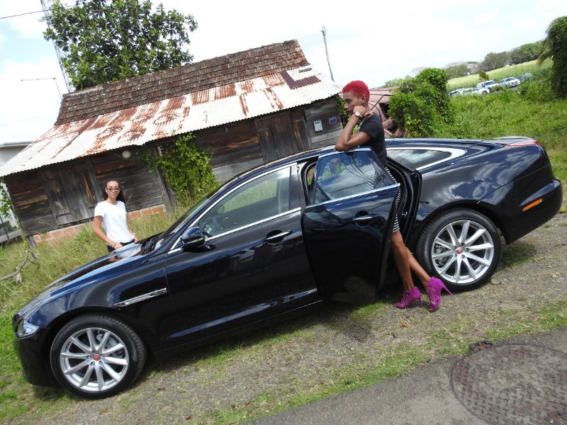 Trajet mixte pour les deux 'Mumu' entre les gouttes et les routes du Lamentin... Ville et campagne dans un univers parfois décalé, loin des grands hôtels ou des centres villes bondés de jeunes cadres frénétiques... Oh surprise, le Jeans déstructuré pour l'une, la robe sexy-love pour l'autre, elles ont adorées la limousine Xj de Jaguar mais pourquoi ?