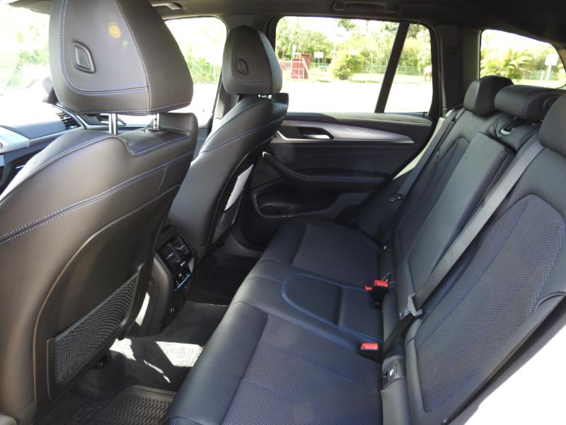 A l’intérieur, rajeunissement complet. Le X3 était le dernier modèle à présenter un écran central intégré à la planche de bord. Il passe donc à son tour à une implantation façon tablette, souvent décriée, mais qui a pour avantage d’alléger sérieusement le mobilier tout en conservant un écran en hauteur. SUV, il n’en oublie ni le confort (sièges ventilés ou diffuseur de parfum), ni la modularité (banquette fractionnée 40/20/40).