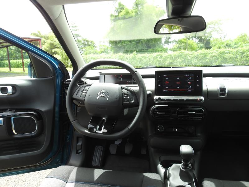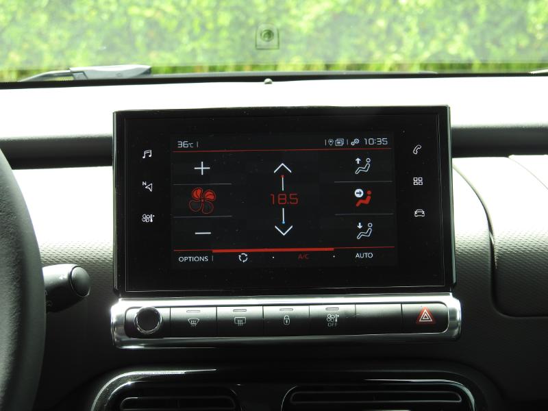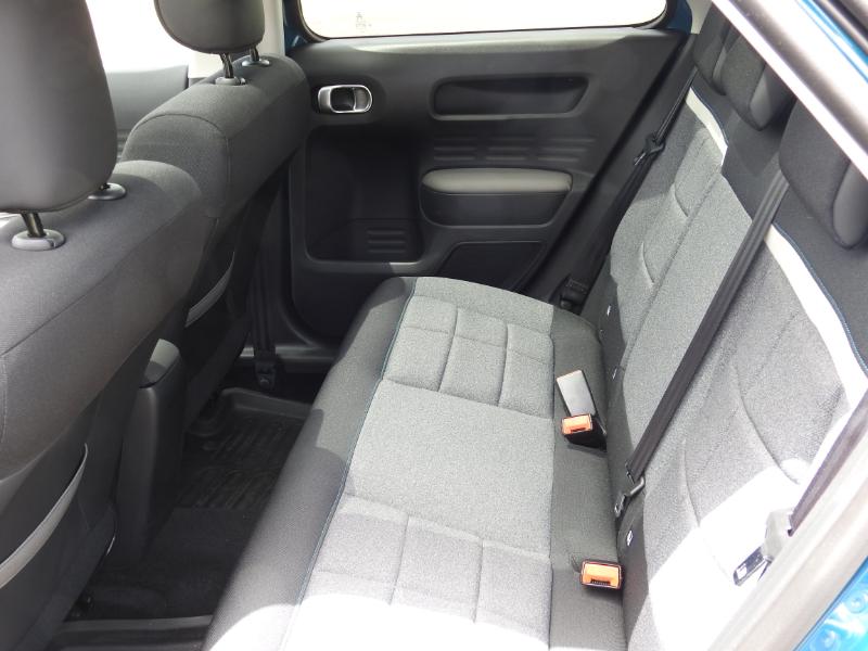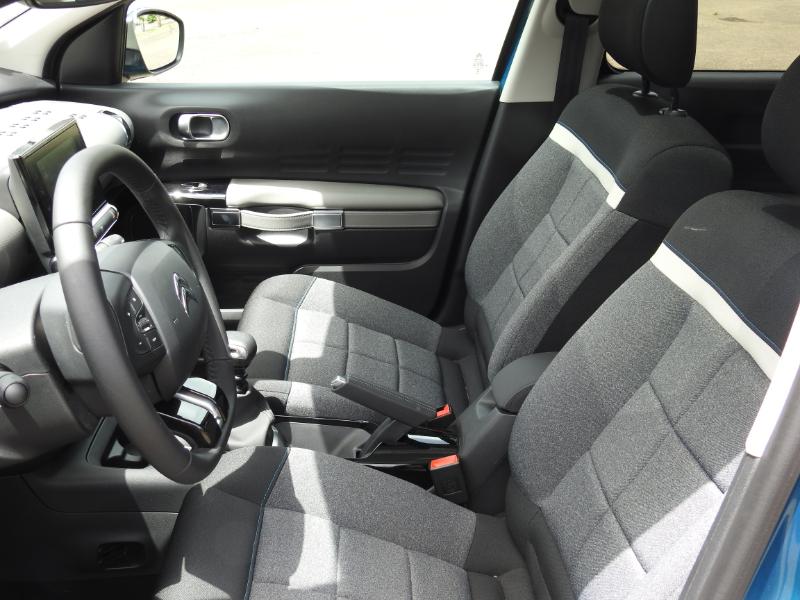 L’assise des sièges avant d’un seul tenant a disparu ; c’est le seul trait nostalgique de l’époque des tractions de papa que l’on ne retrouve plus dans l’habitacle. Ce caprice était suggéré par la boîte robotisée à la commande peu encombrante. Maintenant que la boîte automatique Aisin AW lui est préférée, plus question de proposer cette semi-banquette. Les coussins reçoivent par contre un matelassage complémentaire dans 3 des 4 packs Ambiance que Citroën prévoit en niveaux 2 (Feel) et 3 (Shine) d’équipement. Inspiré du monde de la literie, ce moussage à mémoire de forme «signe visuellement le confort Citroën» (sic) en apportant, certes, une 2e couche de moelleux sans toutefois améliorer le soutien latéral déjà déficient. Maintenir fermement le corps des passagers n’entre pas dans l’ADN d’une vraie Citroën ; difficile donc de s’en offusquer. Surtout que la Cactus est considérée comme la seule fervente défenseuse du confort Citroën à l’ancienne ; celui d’une suspension filtrante comme un coussin d’air qui nous berce dans des mouvements légèrement chaloupés. Le nouveau modèle freine ces oscillations grâce à des amortisseurs à butées hydrauliques progressives donc ; ces dernières sont intégrées dans le corps d’amortisseur et il ne s’agit donc pas de buselures polymères coulissant sur la partie extérieure de la tige d’amortisseur. L’énergie d’un talonnage se résorbe mieux, ajoutant à la qualité d’absorption des liaisons au sol qui, par ailleurs, n’ont plus rien à voir avec une suspension hydropneumatique de la belle époque – même si le ressenti y fait penser. Une structure de caisse plus rigide et une isolation phonique renforcée achèvent de faire de l’habitacle un havre de silence.