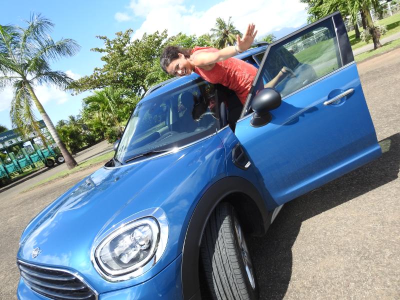 L'accélération garde son attrait et malgré son poids plus élevé, la petite route qui mène de AAA Martinique (BMW/MINI) à l'autoroute fut avalée avec justesse et délice par Jessica Juliane Morel artiste lyrique... Le côté Kart ne c'est pas estompé dans ce mode et l'assise reste un peu ferme... Plus longue, plus confortable mais toujours aussi accrocheuse de bitume la Countryman malgré une assiette plus élevée, reste le crossover le plus 'Branché' du marché... La première chose qui me saute aux yeux après le mode 'Sport' décoiffant, c'est bien évidemment la volonté de Mini, dorénavant, de transporter les familles me confie Jessica, c'est largement possible dans cette Mini Countryman essence !