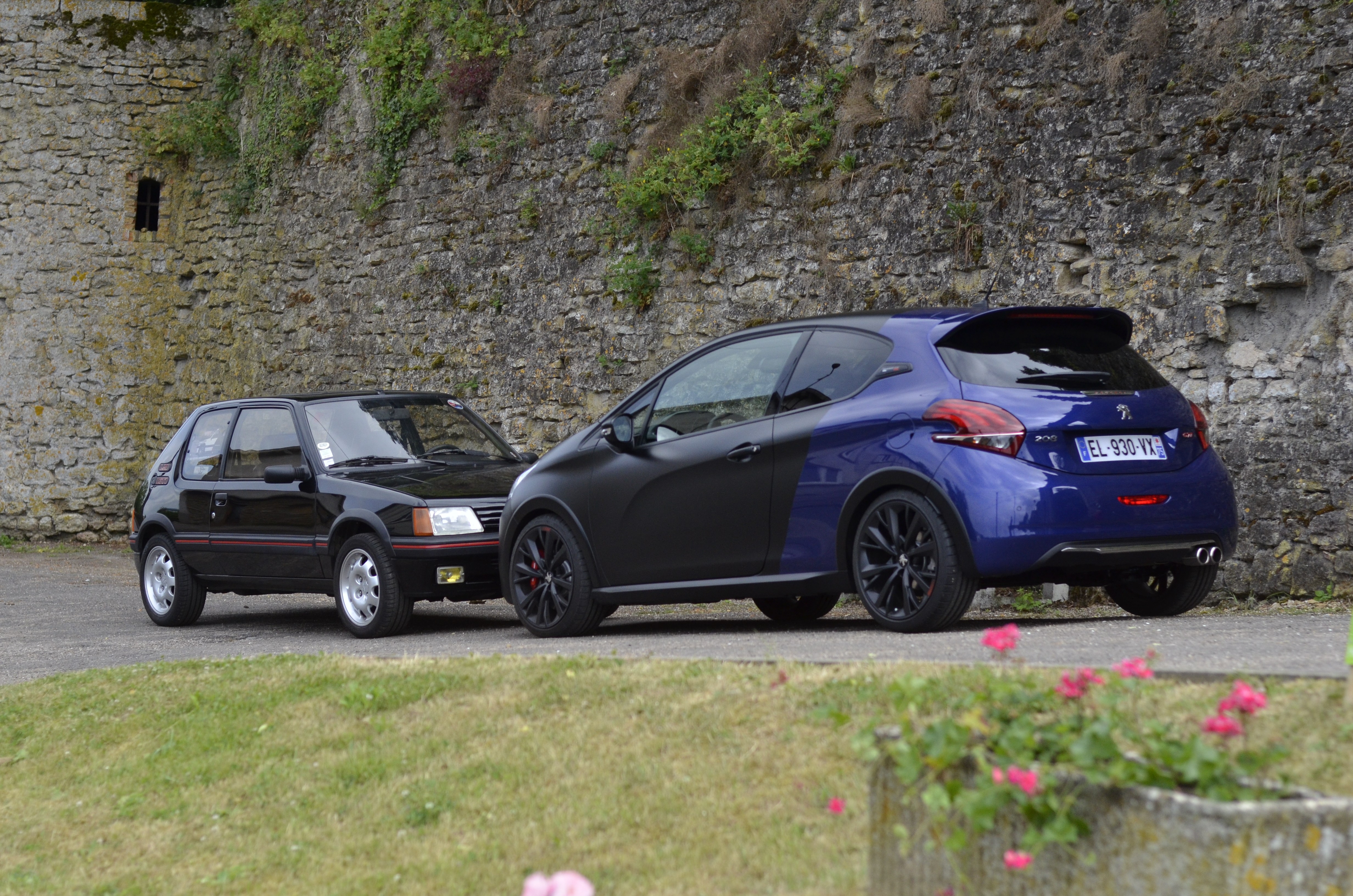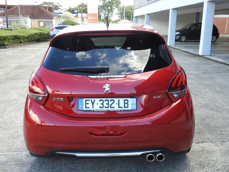 En ce qui concerne le style, la 208 reprend les signatures GTi, tout en appréciant le fait que ce ne soit pas trop ostentatoire. La GTi by Peugeot Sport a droit à des couleurs spécifiques, pour nous ce sera le rouge, et en option le bi-ton "coupe-franche", ou avant noir mat, arrière rouge. Avec ses ailes beaucoup plus larges et ses bas de caisse plus prononcés, la caisse de la voiture a pris du volume ce qui la rend un peu plus trapue. Le becquet arrière reste assez discret, contrairement aux jantes de dix-huit pouces qui cachent les étriers de freins rouges siglés Peugeot Sport. La version "by Peugeot Sport" ajoute un diffuseur spécifique noir mat et une double canule d’échappement. Le haut des ailes arrière accueille l’appellation "by Peugeot Sport" et les couleurs du drapeau français, au même endroit que sur les 205 GTi de l’époque.
