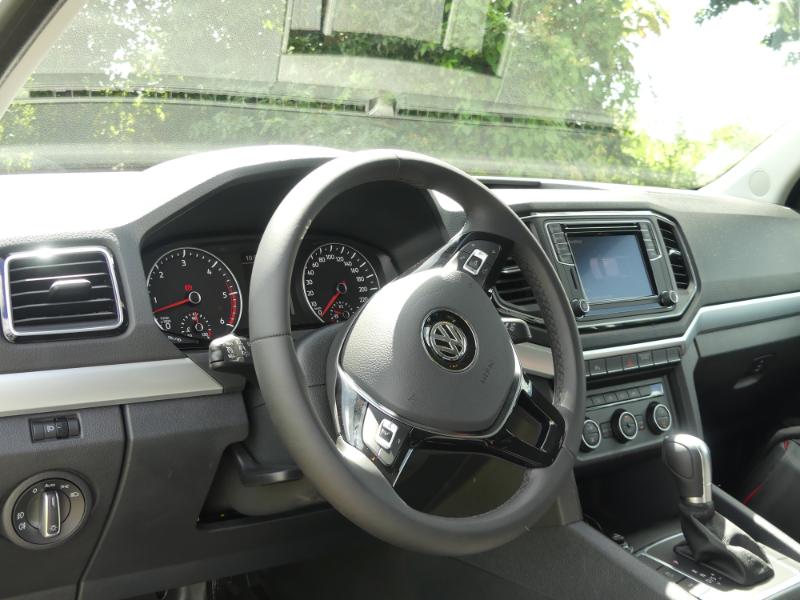 A bord, difficile d’imaginer qu’on est assis dans un pick-up. Tout a été pensé pour faire oublié que nous sommes dans un pick-up. A commencer par les sièges ergoComfort, ajustables sur 14 positions. Le volant multifonction est parfaitement prit en main. Ultra-connecté, l’Amarok dispose de la fonction « App Connect » qui permet de transférer les applications pour smartphone vers l’écran tactile. Côté confort tout y est très sérieusement même si le choix des matériaux reste un peu moyen sur les plastics du haut de tableau de bord, mais l'Amarok se rattrape aisément sur de nombreux autres points...