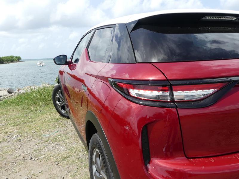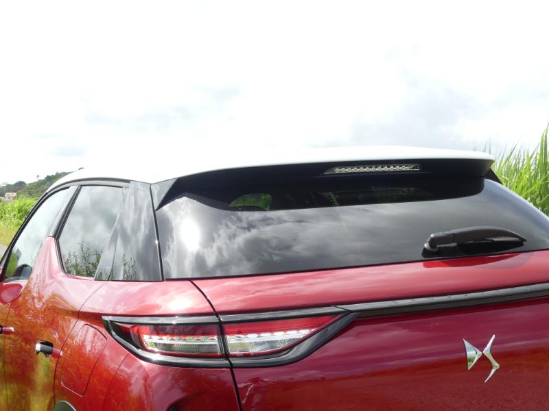 Le nouveau DS3 Crossback offre le meilleur niveau d’équipement et de finition de la catégorie. Il ne vise donc pas la concurrence française, mais cible plutôt les deux modèles allemands que j'évoquais... Côté conduite, il revendique le meilleur compromis entre confort (de sellerie cuir comme de suspensions) et dynamisme, mais montre également beaucoup en termes d’insonorisation et plus globalement en agrément de conduite. Le poste de conduite, lui, est 100% numérique avec un combiné personnalisable (de série), un affichage tête haute (en option) matérialisée par une lame transparente et un grand écran central tactile de 7 pouces, Le DS3 Crossback essayé en Martinique propose également le Kit mains-libres Bluetooth, Prise USB, Aide au démarrage en côte sans clé, Allumage des phares automatique, Frein stationnement électrique automatique, reconnaissance des panneaux de vitesse, détecteur de franchissement de ligne involontaire, la reconnaissance vocale...Caméra 360°, radar avant, recharge de votre téléphone à induction, accès sans clé, Apple Car Play, Adroïde Auto... Les passagers arrières sont installés dans un vrai confort malgré un regret : la garde au jambes un peu restreinte... Mais la note est rehaussée par la qualité de confort et la bonne tenue de route que j'évoquais un peu plus haut dans cet article !!!