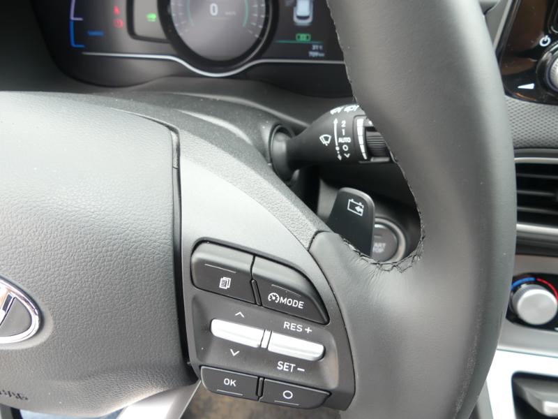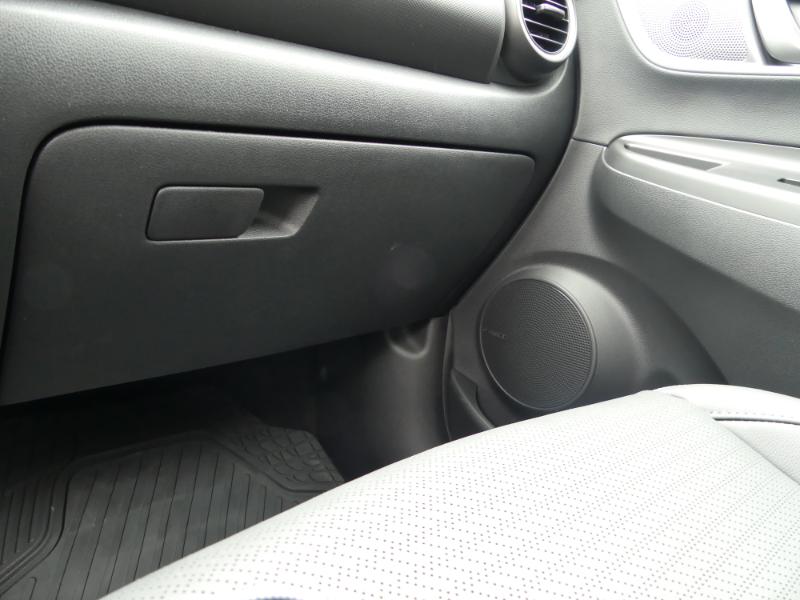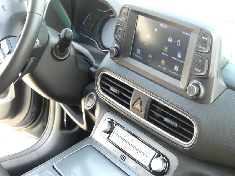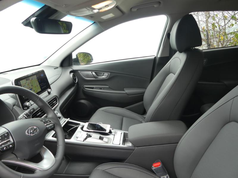 La cabine du Kona Electric est à peu près la même que celle de son homologue à essence: elle est fabriquée avec des matériaux de qualité, confortable et riche en fonctionnalités. Les sièges arrières et la zone de chargement sont un peu étroits, même en conformité avec les normes des sous-compactes, mais puisque la Kona a été conçue dès le départ pour accueillir un bloc-batterie, il n’y a pas moins de place à l'intérieur de l'Electric que le modèle standard. Tous les modèles sont livrés avec un système d’info divertissement à écran tactile comprenant Apple CarPlay et Android Auto. La surveillance des angles morts et le freinage d'urgence automatisé sont standard dans toute la gamme, mais les technologies de régulation de vitesse adaptative et de détection des piétons ne sont proposées que sur le modèle Ultimate de dernière génération dont j’avais à l’essai.