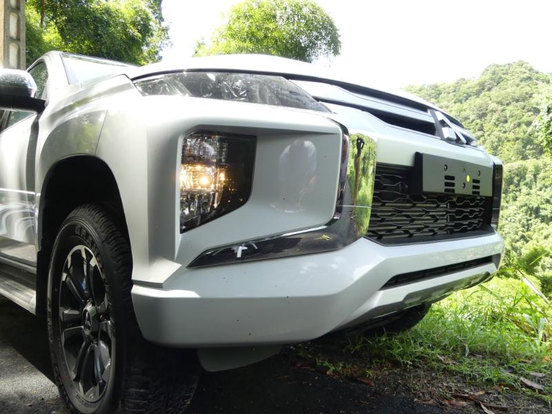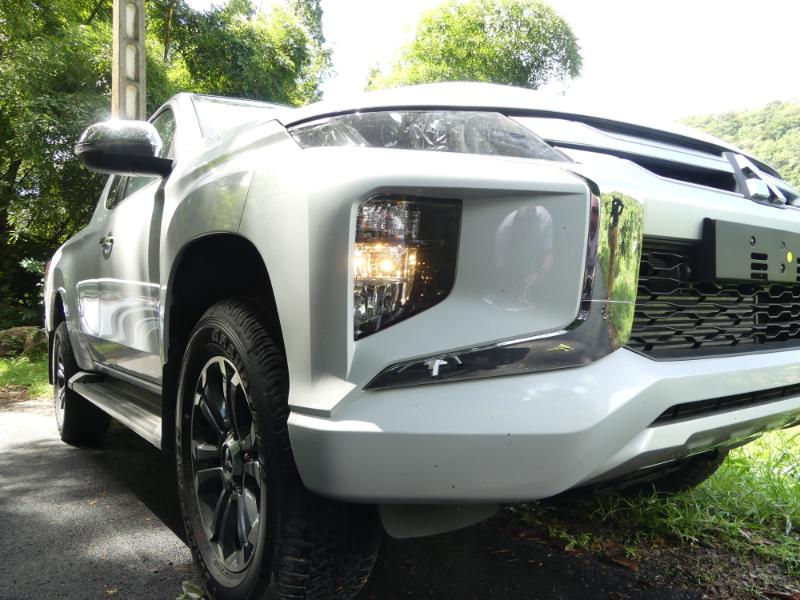 C’est vu de l’avant que Mitsubishi le L200 version 2019 marque le plus sont changement. Fini les rondeurs et la calandre verticale, voici venues les lignes tendues, les effilées et une calandre horizontalisée, baptisée « Dynamic Shield ». Les parenthèses inversées de part et d’autre du pare-chocs sont directement inspirées des Outlander restylés et du dernier Eclipse Cross. C’est massif et imposant, il s'inscrit dans les codes utilisés par la concurrence... Départ pour un jogging puissant et musclé sur les routes de Didier...