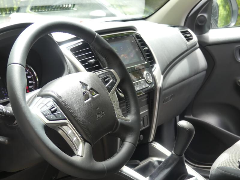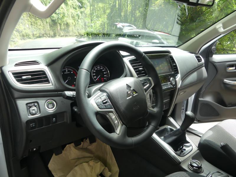 Ce nouveau L200 est un petit malin. Si sa ligne extérieure et la partie technique ont fait l’objet d’assez nombreuses modifications, sa partie cabine en revanche a majoritairement été reprise de la cinquième générationOn retrouve donc la même planche de bord, laquelle reçoit tout de même de nouveaux équipements, dont un système d’infodivertissement qui dispose des connectivités Apple CarPlay et Android Auto. Sur les finitions les plus abouties, l’équipement du pickup n’a rien à envier à une bonne berline : climatisation automatique bi-zone, volant et sièges chauffants avant (et même électrique côté conducteur !), caméra de recul, ouverture et démarrage sans clé, ou encore feux à LED. Un bémol toutefois : certains équipements high-tech sont curieusement uniquement réservés à la version Double Cabine : système de caméra 360°, éclairage intelligent, détection des angles morts… Presque entièrement composée de plastiques rigides, la planche de bord est dépourvue de fioritures, mais semble à même d’encaisser les utilisations les plus rudes